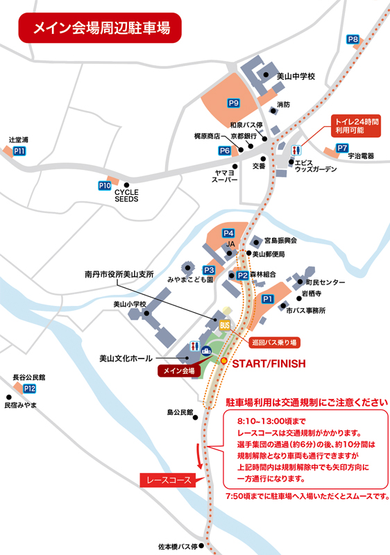 | P1 | 南丹市営バス 美山事務所前(メイン会場向かい) 〒601-0751 京都府南丹市美山町島往古瀬23 |
