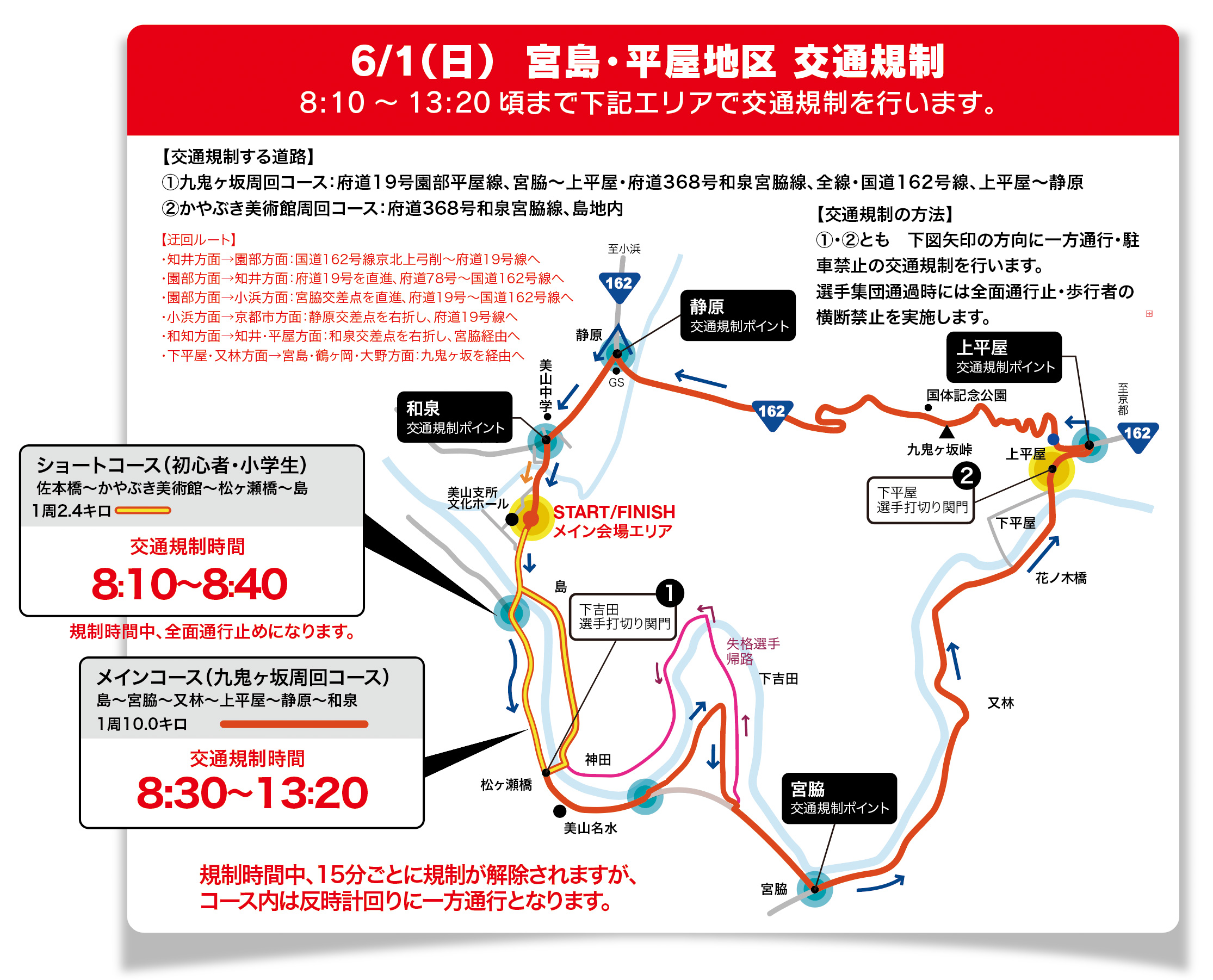 ※一部、レースコースと重なりますので規制時間内は誘導に従ってください。